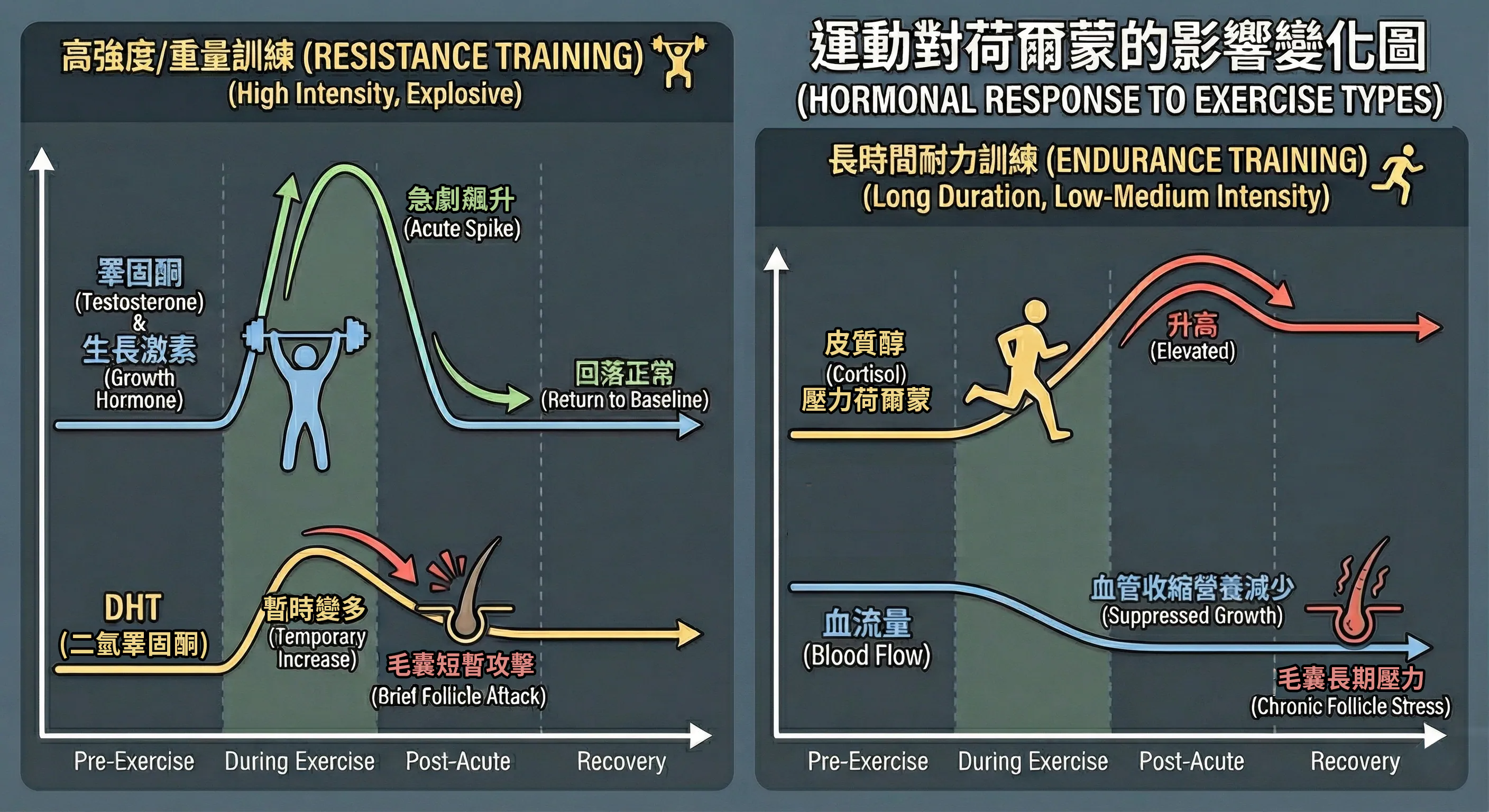 ▲重訓後 DHT短暫暴衝;長跑後 皮質醇慢性圍城